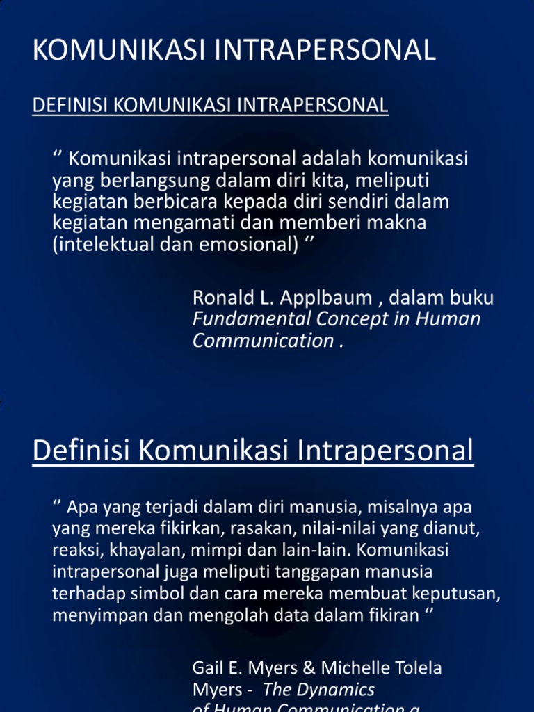 Berdasarkan sudut pandang ini komunikasi intrapersonal terjadi ketika. Feedback umpan balik 4. Komunikasi intrapersonal merupakan keterlibatan internal secara aktif dari individu dalam pemrosesan simbolik dari pesan-pesan.